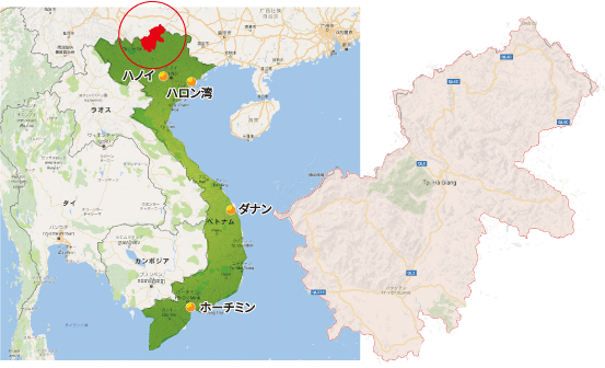 省都ハザン市はイオンモールがあるハノイ市中心部から北に319キロに位置する。雄大な山々があり、原生林面積が大きく貴重な樹木が多く生息し、薬用植物も1000種以上生息している。